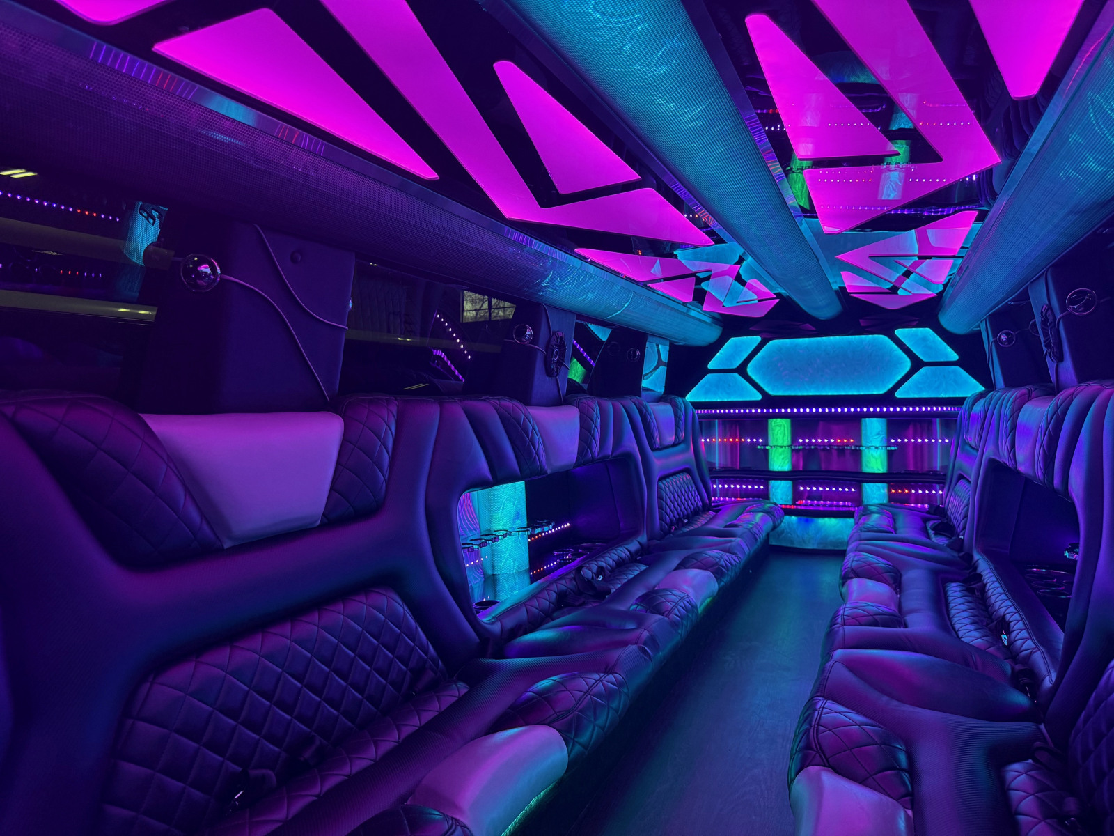 There is a bar with drinks in every bus or limo we provide. Inside you’ll find iced bottles of champagne, beer, juices, soda, and water. Some cocktails and special additions are up to your choice.